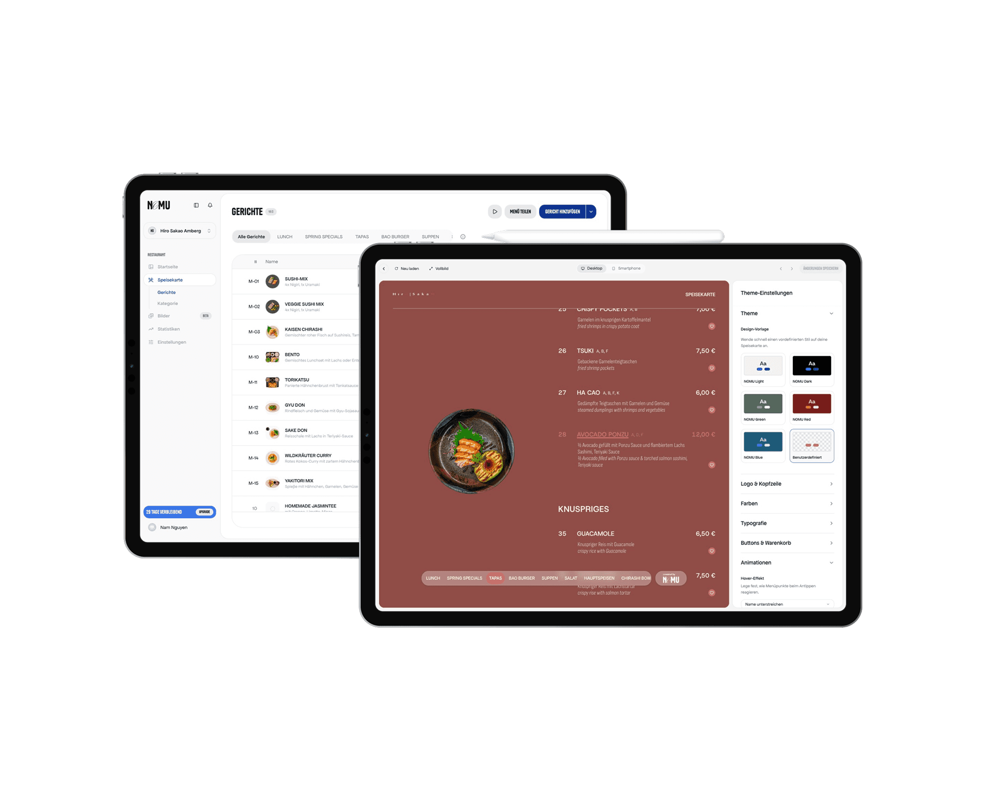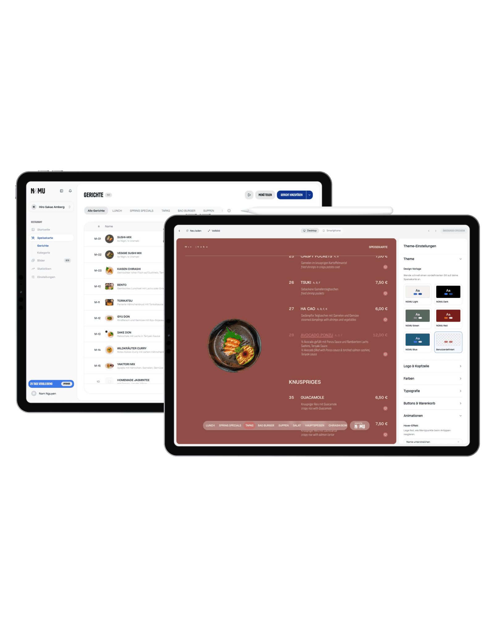 Colors, fonts, layout - fully tailored to your restaurant. A menu that feels like it belongs to you.